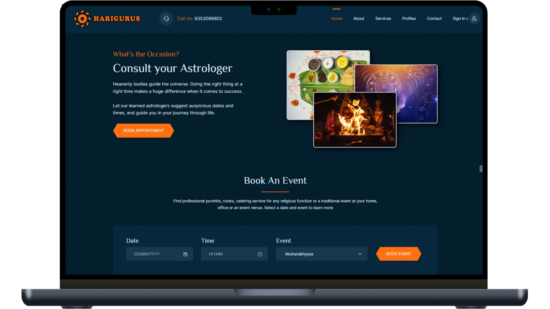 (Event Booking)HariGurus is a one-stop-shop for all Hindu religious, customs and traditional requirements. Built the complete site from scratch.